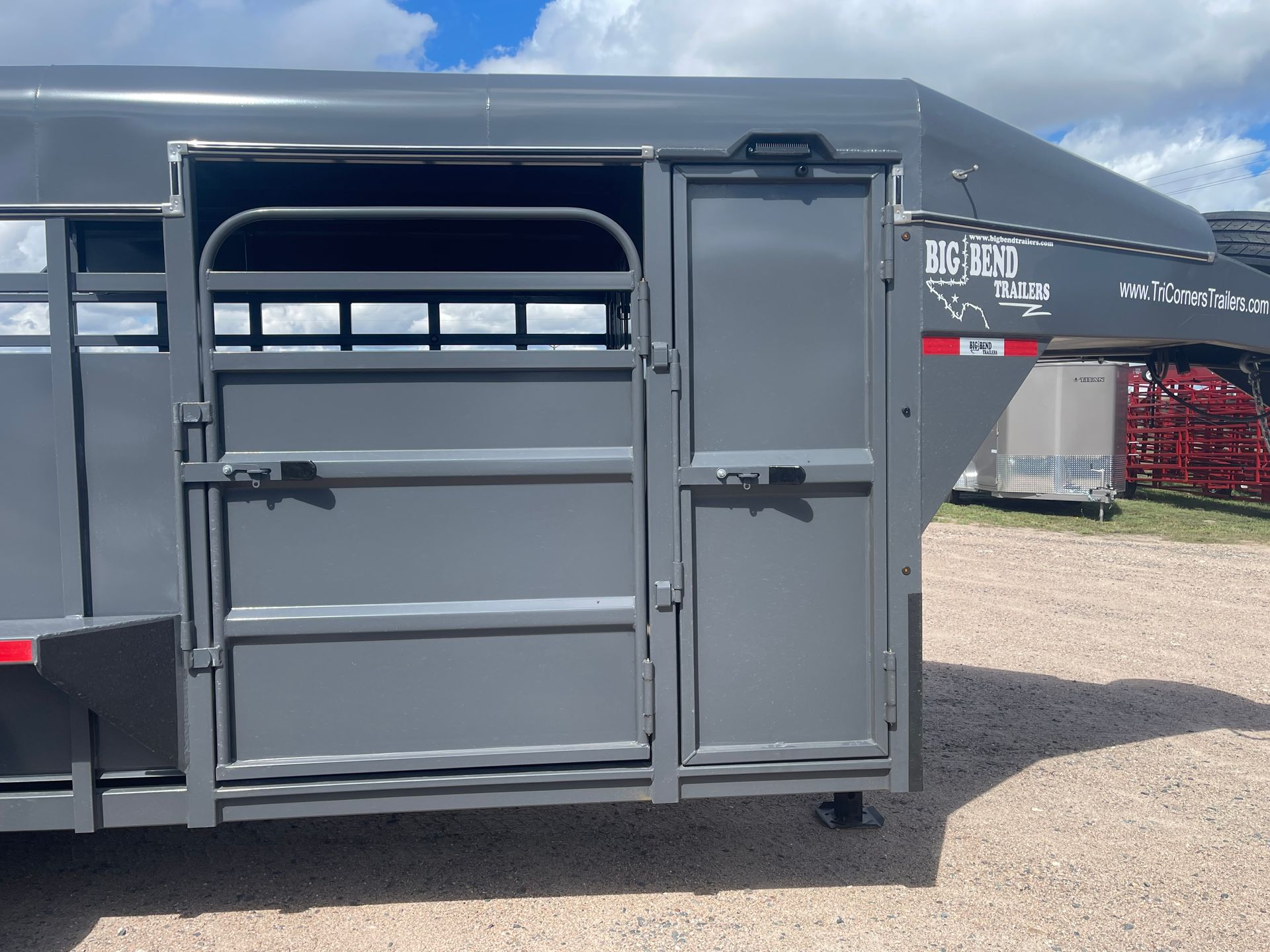 - Right hand Taller/wider escape door (saddled horse can load)