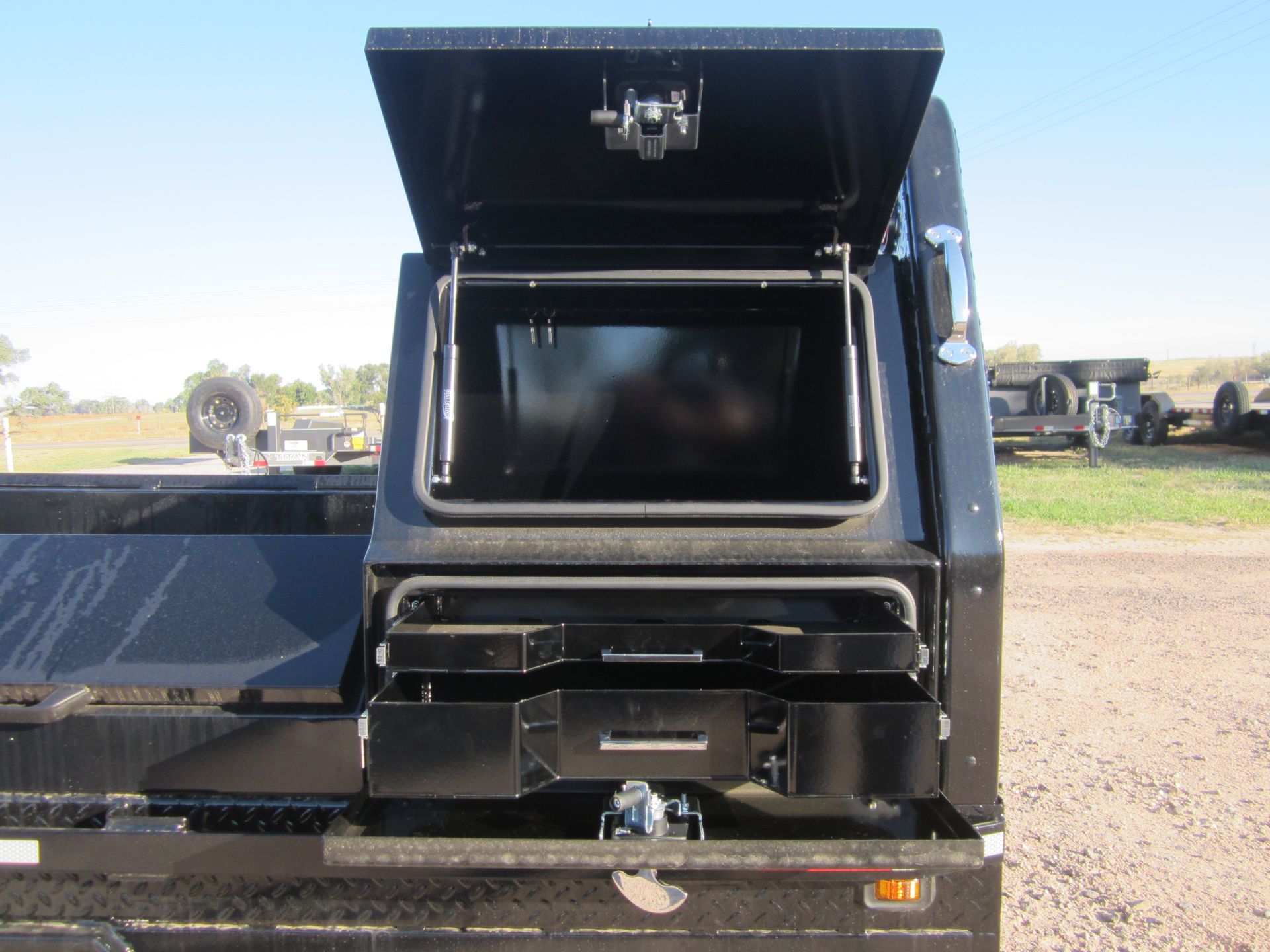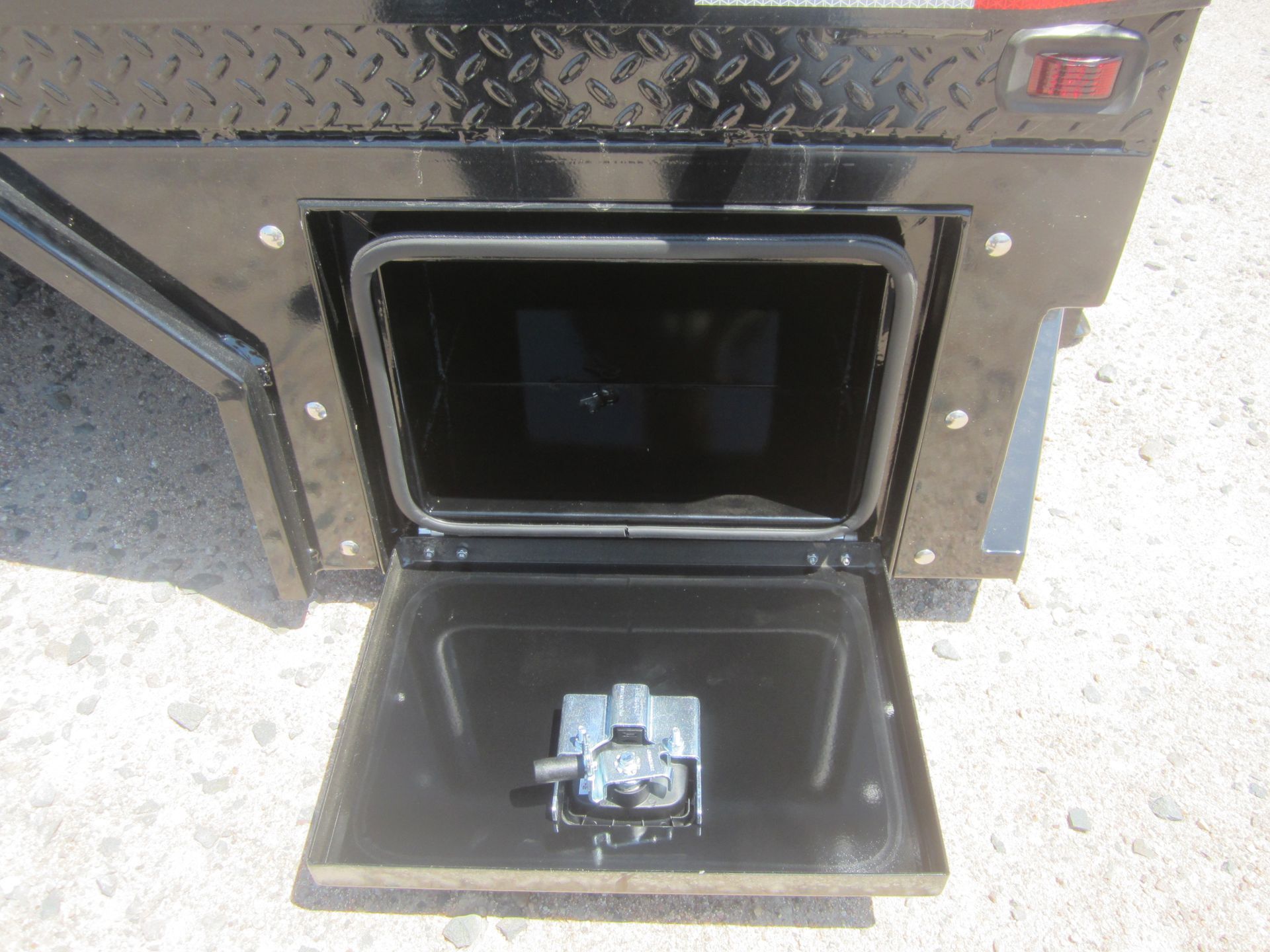 - Four undermount toolboxes with chrome t-handle latches with key locks