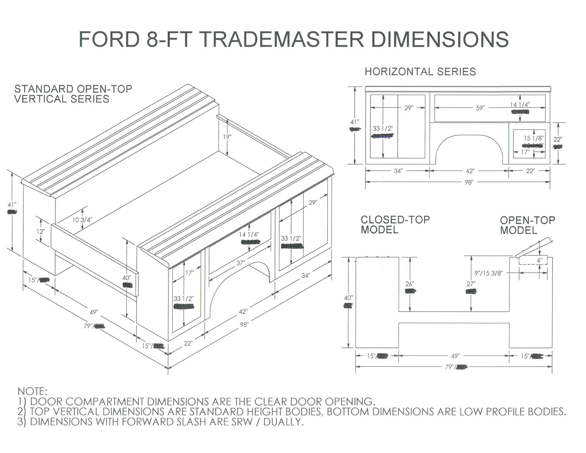 - Front double-door boxes 29W x 33.5T x 15D