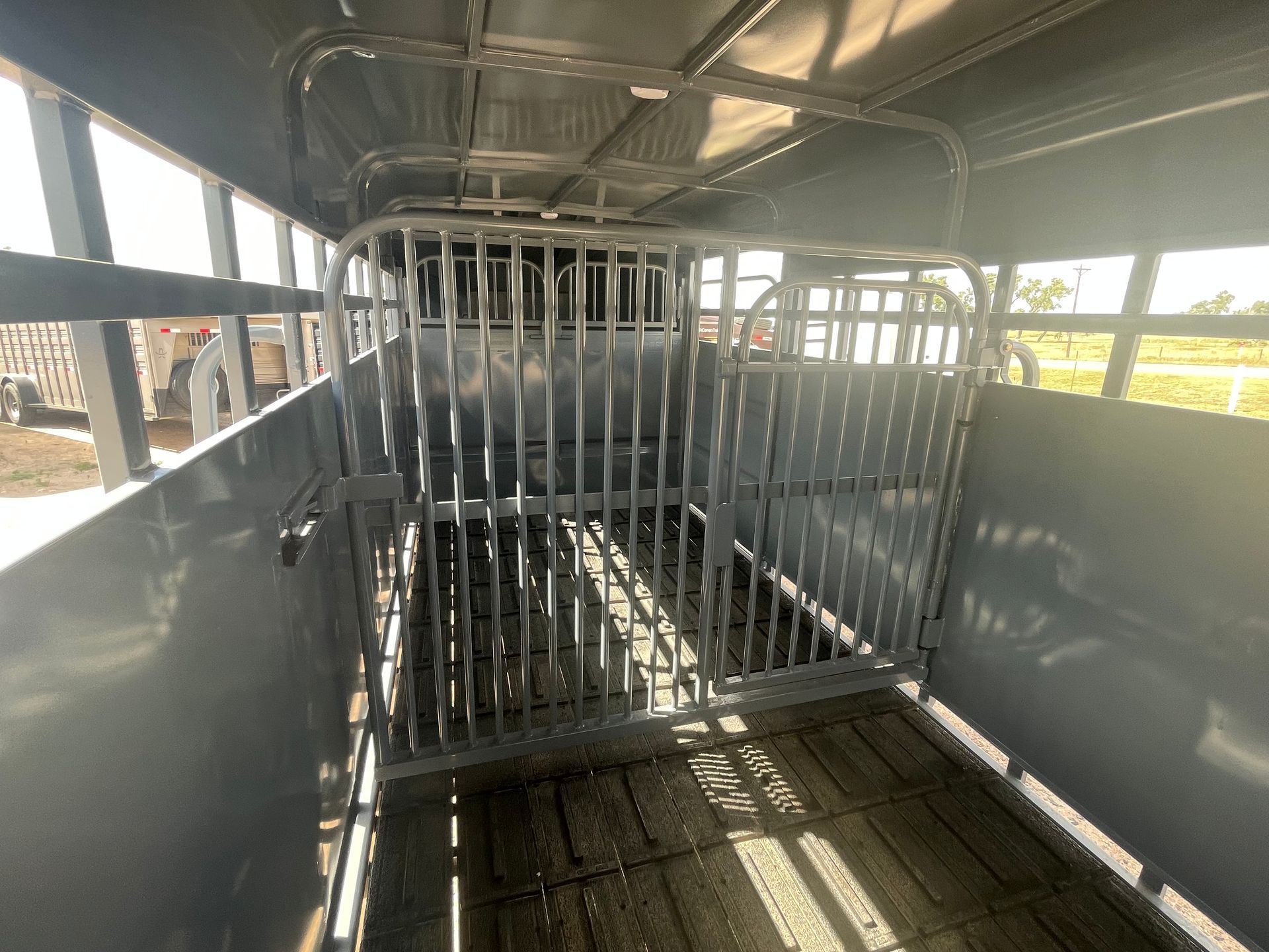 - 3 Equal livestock compartments with swinging sorting cut gates
